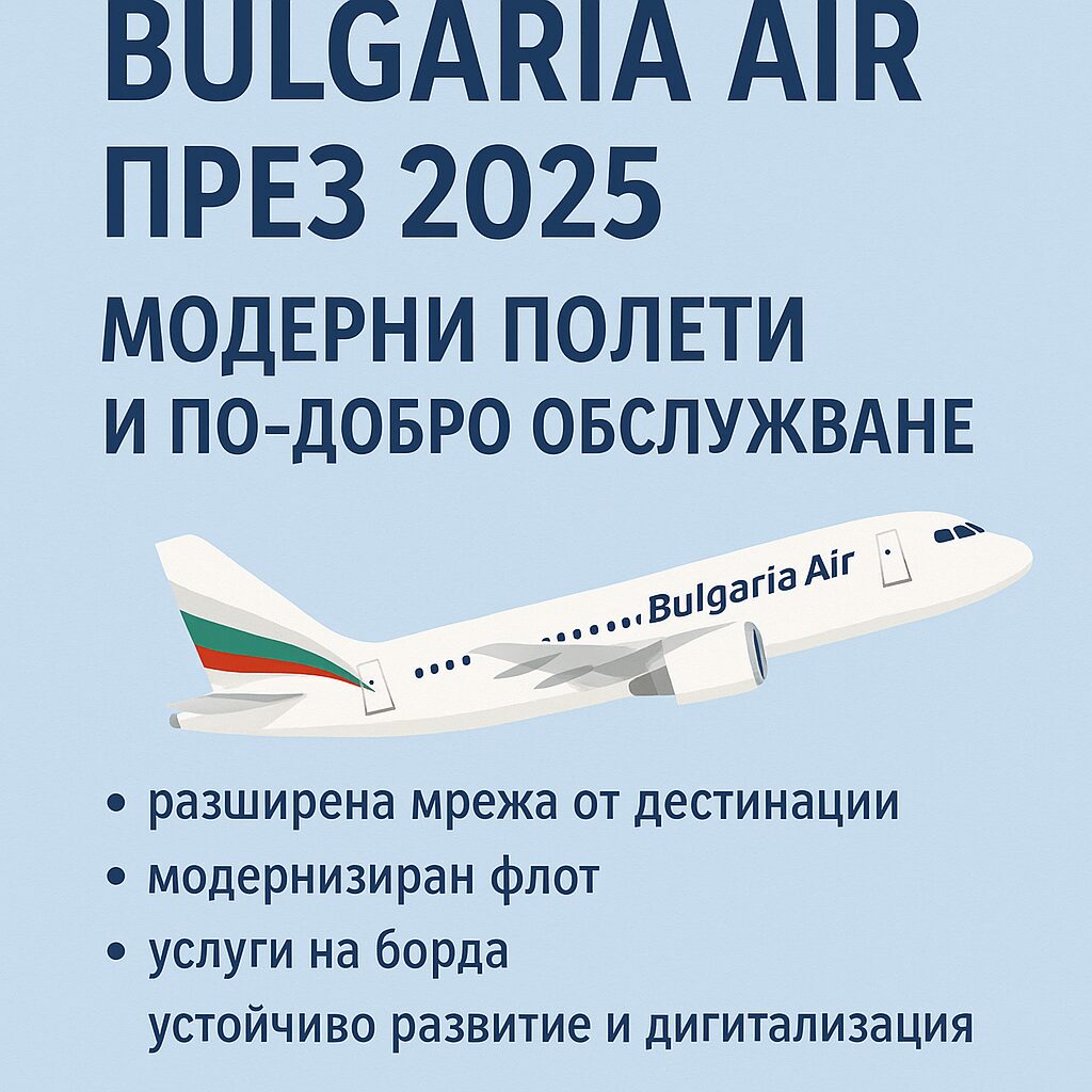 През 2025 г. Bulgaria Air се позиционира като надежден, достъпен и модерен избор за българските пътници. Независимо дали пътувате по работа, за почивка или посещавате близки, авиокомпанията предлага сигурност, удобство и високо ниво на обслужване. За всеки българин в движение – Bulgaria Air остава национална гордост и доверен партньор във въздуха.